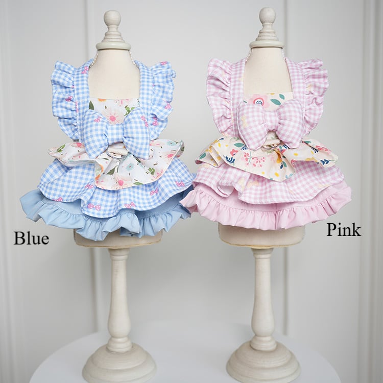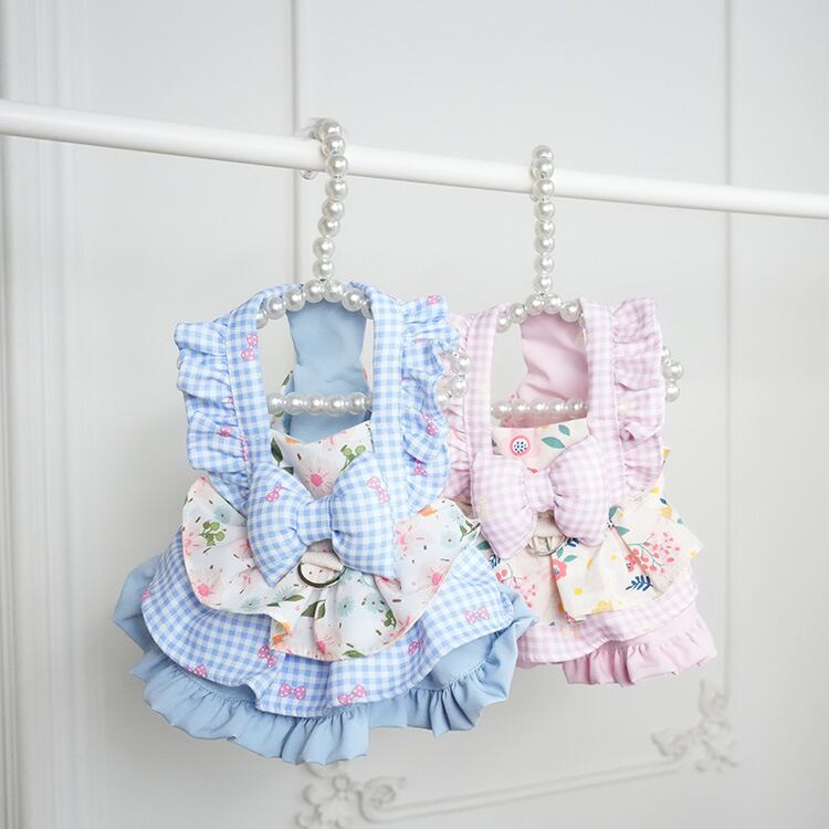 【予約商品】ドッグウエア 犬服 キャットウエア 猫服 / ワンピース チェック フリル リボン 花柄 ピンク ブルー 春 夏 新作 B27-0698 (わんこ服 服 わんちゃん おでかけ 小型犬 中型犬 子犬 猫 ねこ ねこ服 犬用品 ペット用品 ペット服 可愛い 人気 おススメ チワワ ちわわ トイプードル トイプー マルチーズ シーズー ヨーキー シュナウザー ミニチュアダックス パグ スピッツ キャバリア ジャックラッセル パピヨン ビションフリーゼ コーギー ボストンテリア)