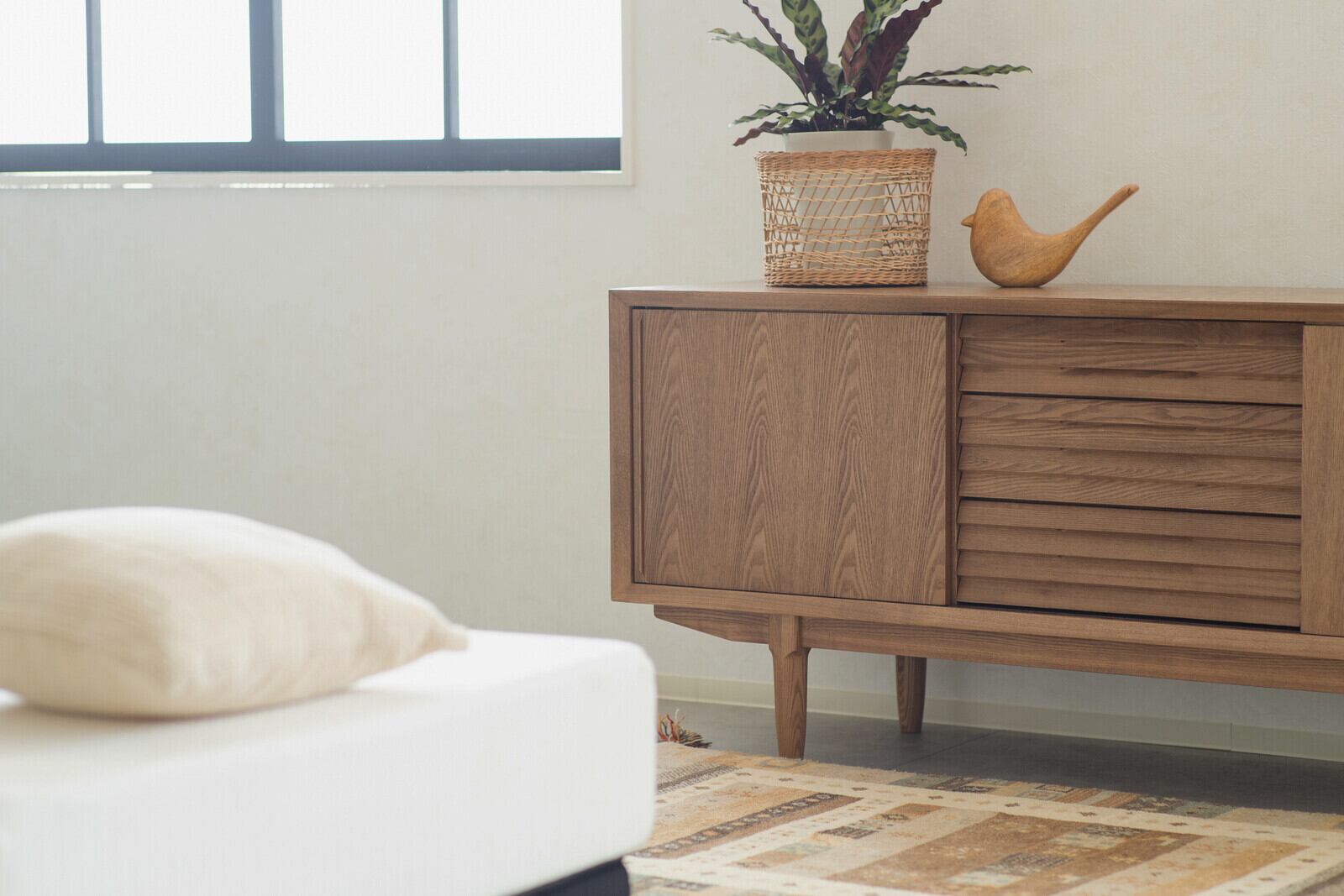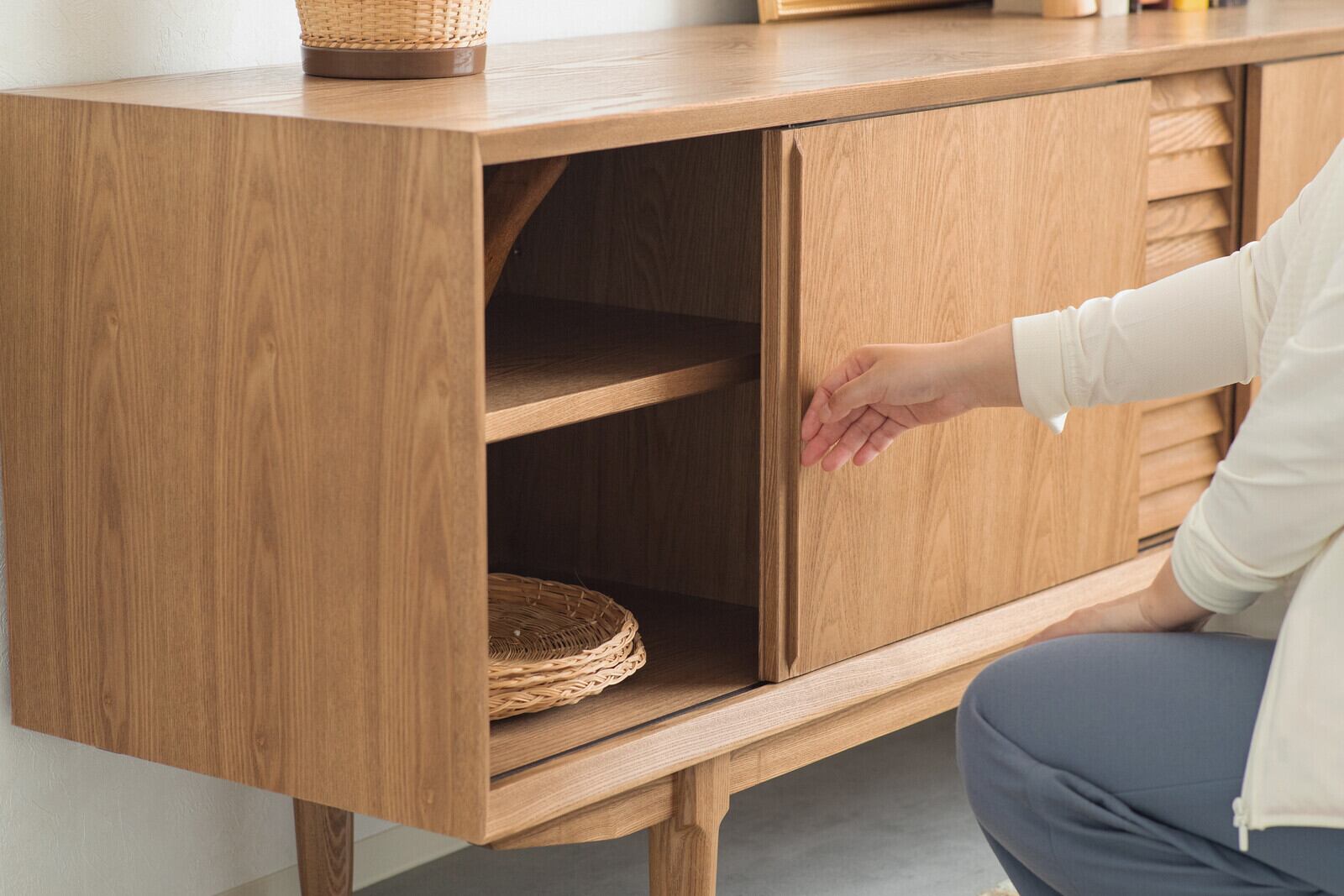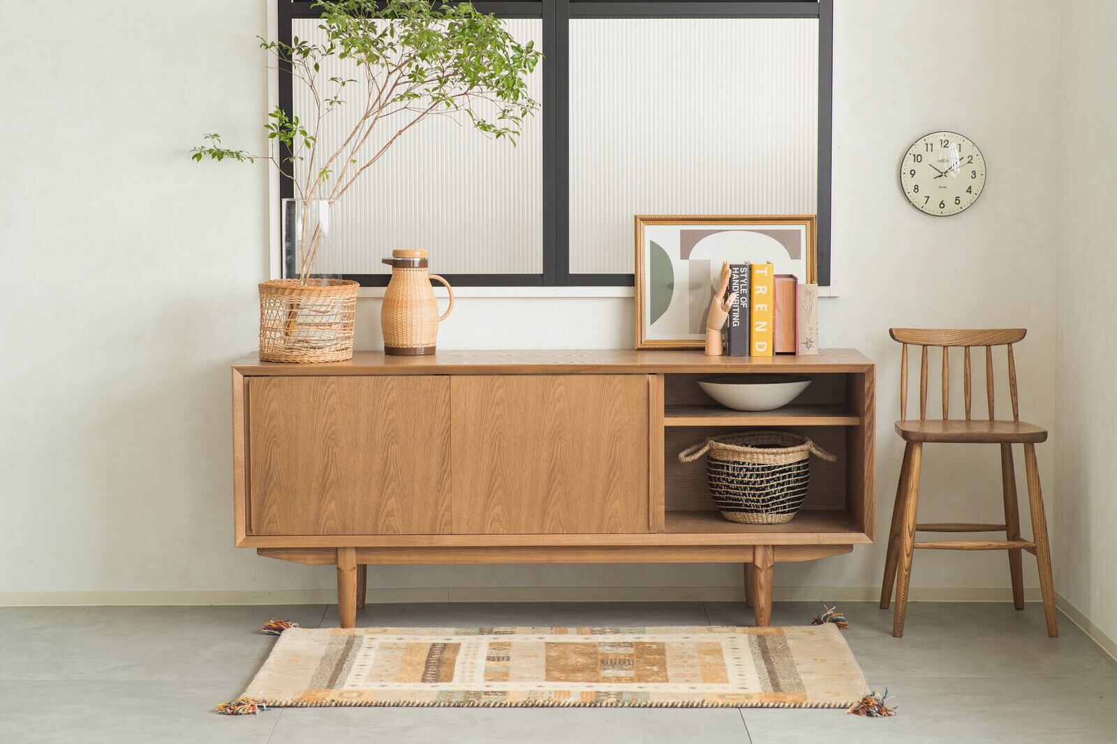 生活感を隠し、スッキリとまとまるサイドボード。