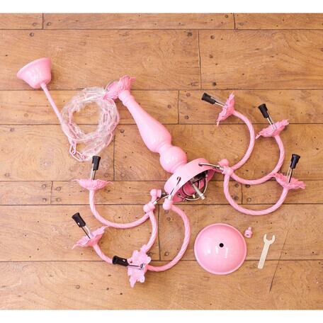 全体が上品なピンク色のシャンデリアです。