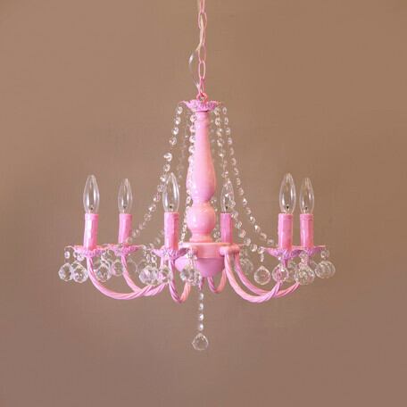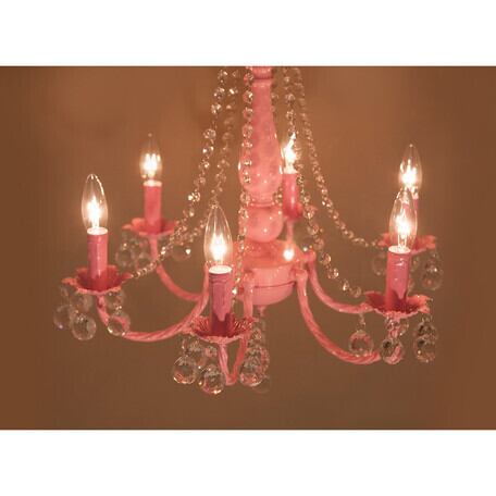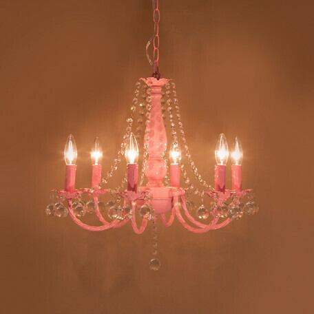 クリスタルガラス シャンデリア ピンク 6灯 B23-203 (照明 ライト シャンデリア照明 アイアン クリスタル チェーン 高級 ゴージャス インテリア インテリア雑貨 デザイン お洒落 おしゃれ オシャレ 人気 おススメ おすすめ)