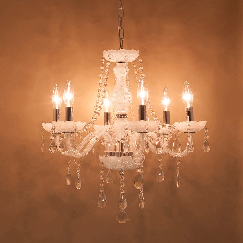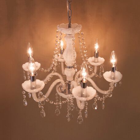 クリスタルガラス シャンデリア 6灯 B23-218 (照明 ライト シャンデリア照明 アイアン クリスタル チェーン 高級 ゴージャス ブルックリン ヨーロピアン インテリア インテリア雑貨 デザイン お洒落 おしゃれ オシャレ 人気 おススメ おすすめ)