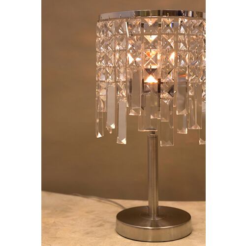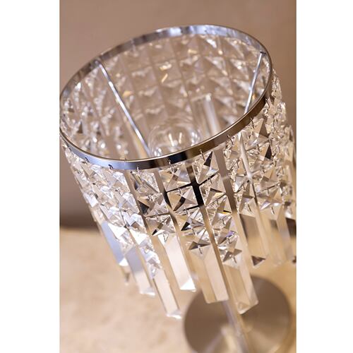 豪華でクリスタルビーズが連なったテーブルランプ。