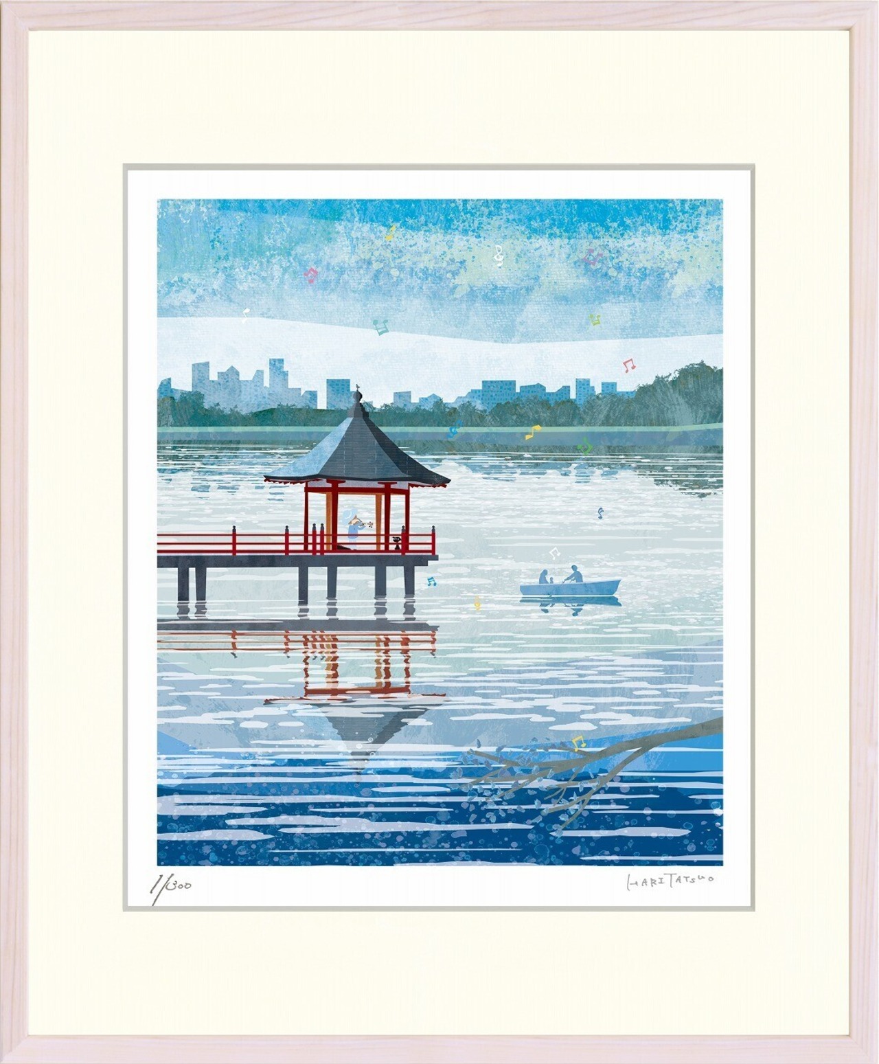 アートフレーム はり たつお 大濠公園の浮御堂(福岡県) フレーム付き B31-190 (畭 辰雄 DH ディー・エイチ 日本 風景 和 グラフィック イラストレーター フレーム パネル ポスター ボード 壁掛け アート 絵 絵画 おしゃれ インテリア お洒落 おしゃれ オシャレ 人気 おススメ おすすめ)