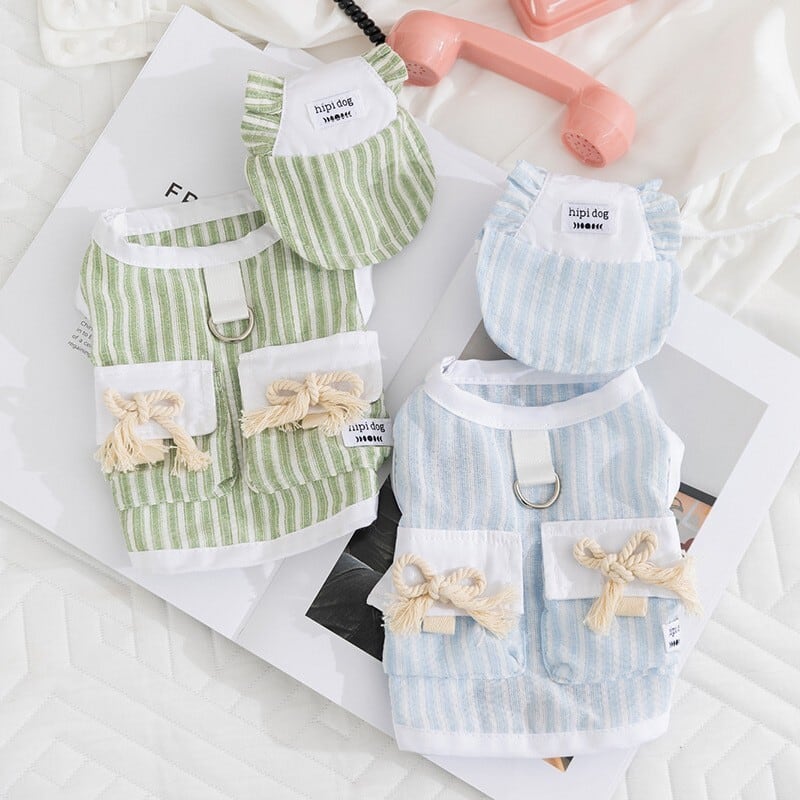 【予約商品】ドッグウエア 犬服 キャットウエア 猫服 / ベスト 帽子 2点 セット ストライプ 日除け 日よけ 紫外線対策 紫外線防止 春 夏 新作 B27-0753 (わんこ服 服 わんちゃん おでかけ 小型犬 中型犬 子犬 猫 ねこ ねこ服 犬用品 ペット用品 ペット服 可愛い 人気 おススメ チワワ ちわわ トイプードル トイプー マルチーズ シーズー ヨーキー シュナウザー ミニチュアダックス パグ スピッツ キャバリア ジャックラッセル パピヨン ビションフリーゼ コーギー ボストンテリア)