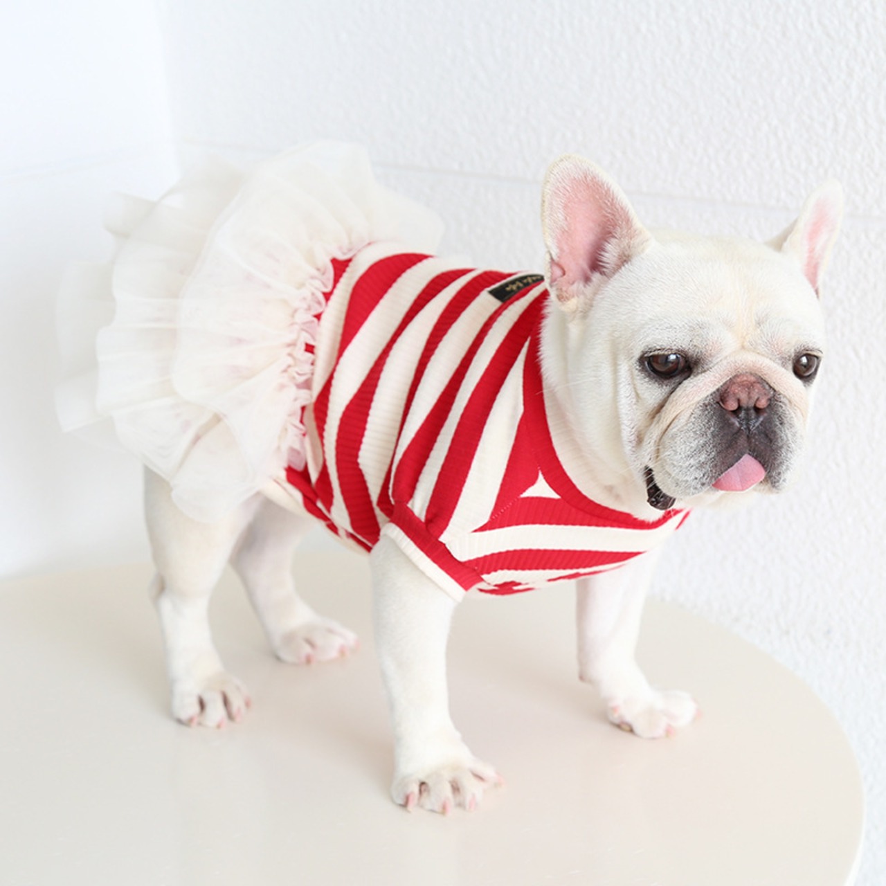 【予約商品】ドッグウエア 犬服 フレブル ブル フレンチブルドッグ / ワンピース フリル ボーダー レース 春 夏 新作 B27-0772 (わんこ服 服 わんちゃん おでかけ 中型犬 春 夏 秋 犬用品 ペット用品 ペット服 可愛い 人気 おススメ)