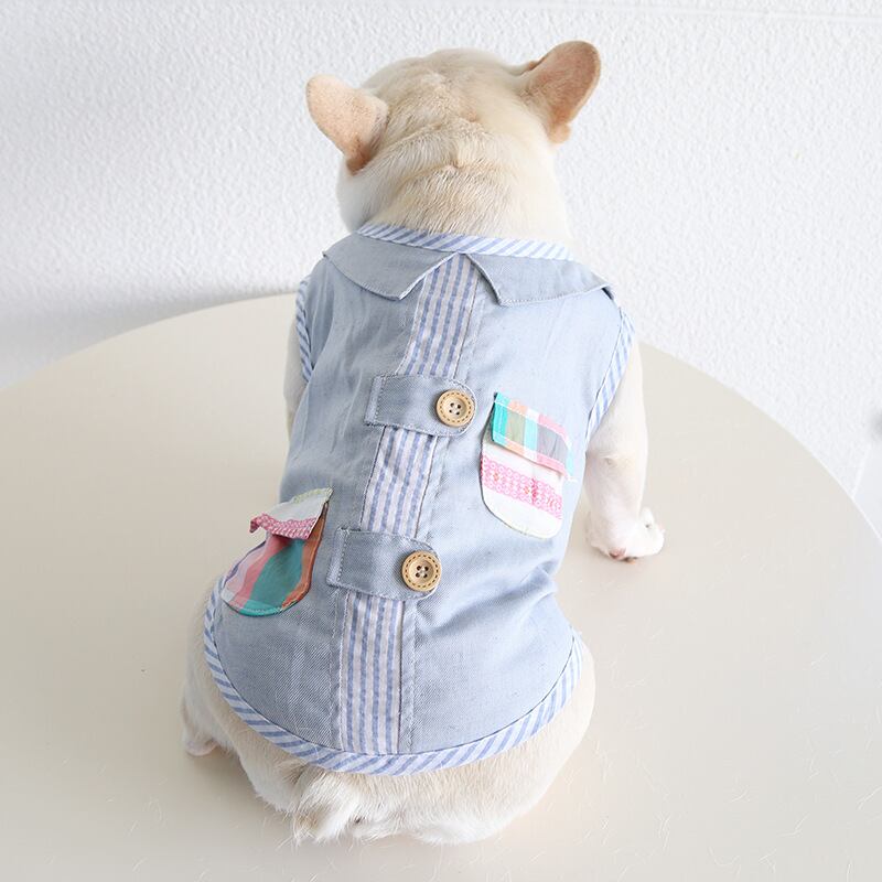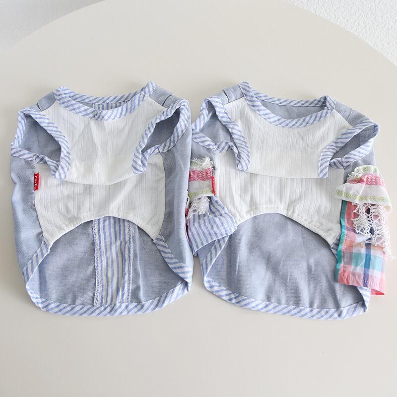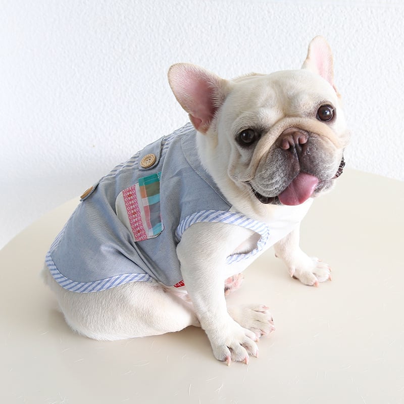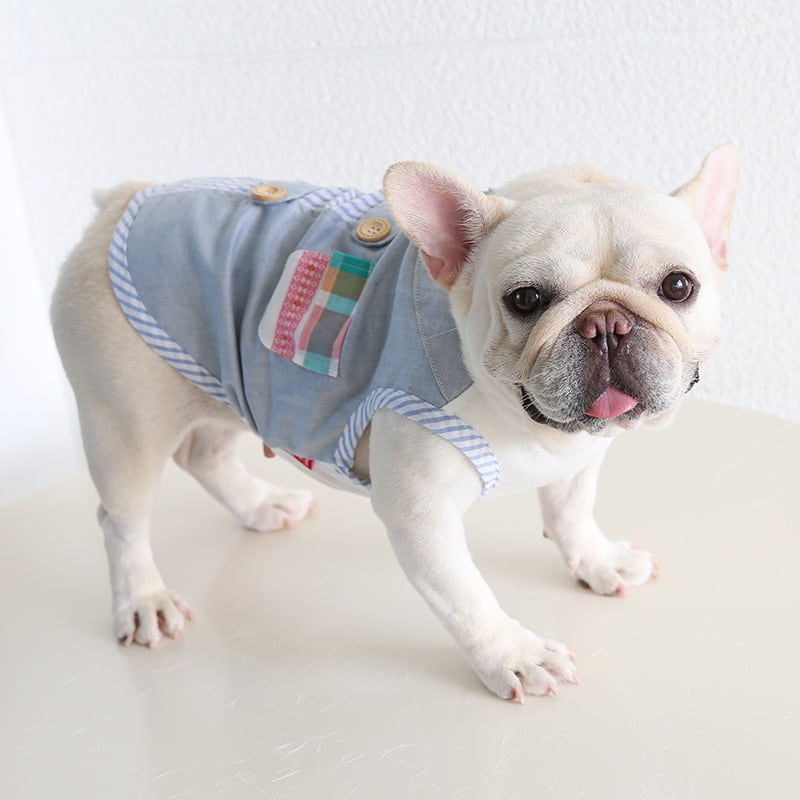 【予約商品】ドッグウエア 犬服 フレブル ブル フレンチブルドッグ / タンクトップ ストライプ レース フリル チェック 綿 コットン ブルー 青 春 夏 新作 B27-0868 (わんこ服 服 わんちゃん おでかけ 中型犬 春 夏 秋 犬用品 ペット用品 ペット服 可愛い 人気 おススメ)