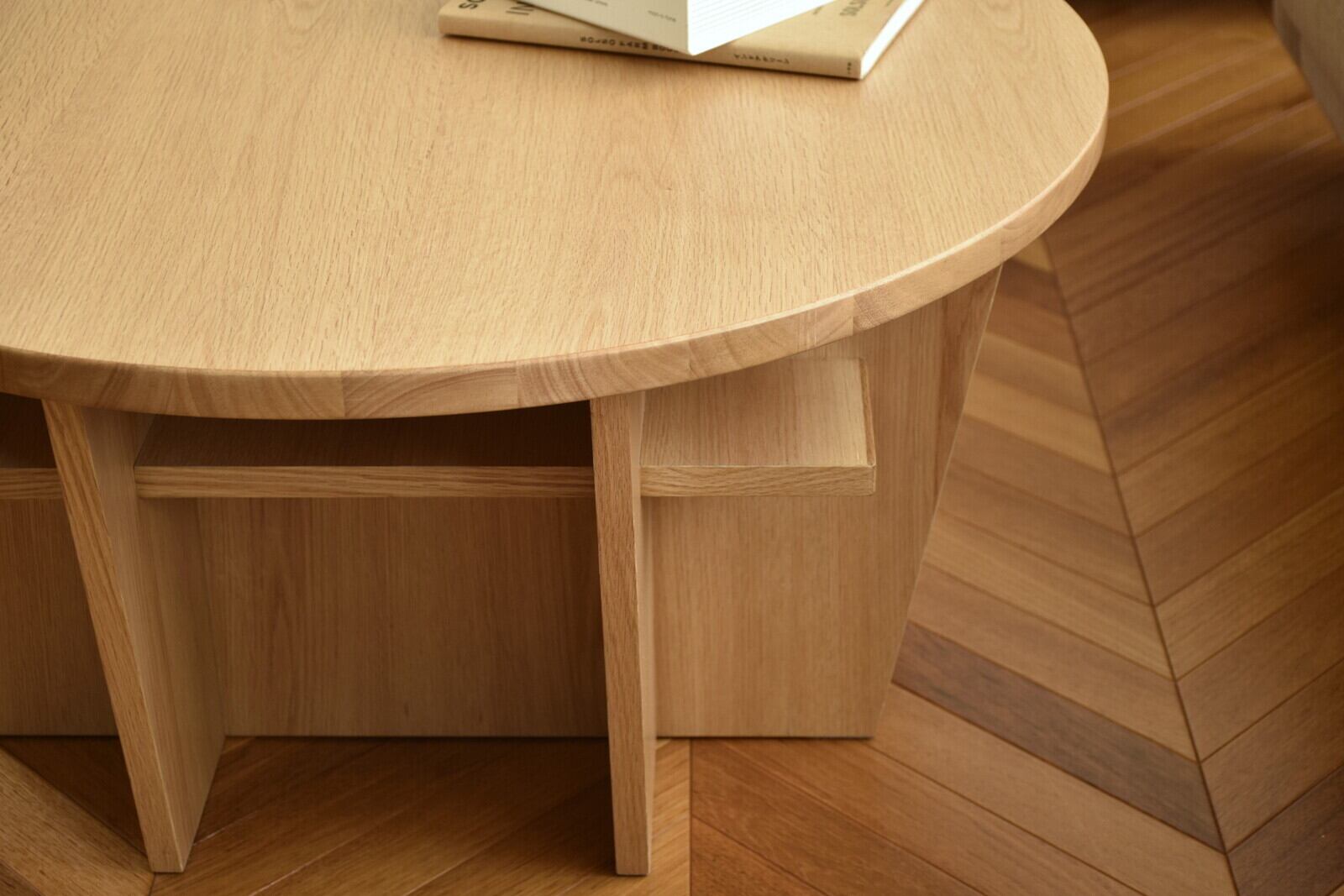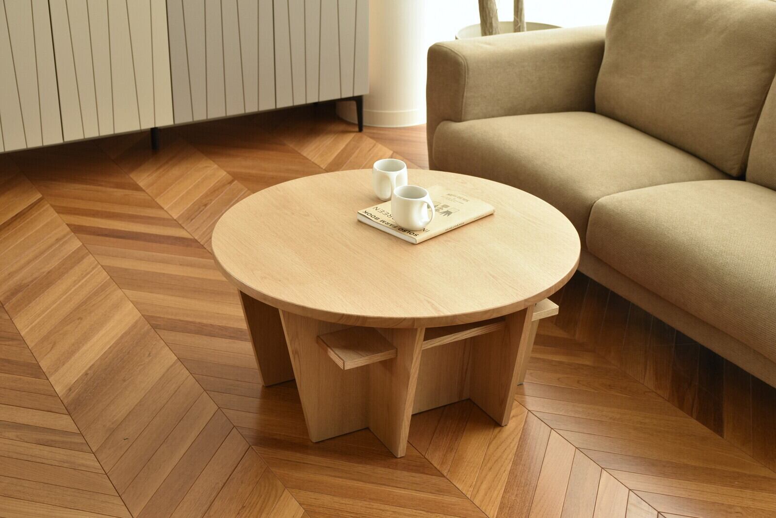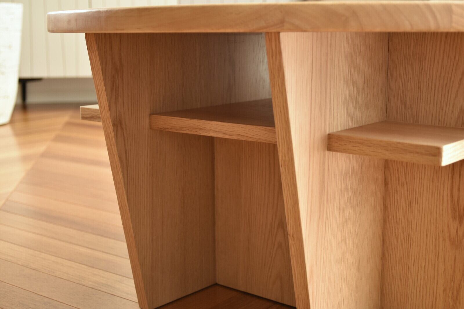 天然木の温もりとデザイン性を両立した、リビングの主役。