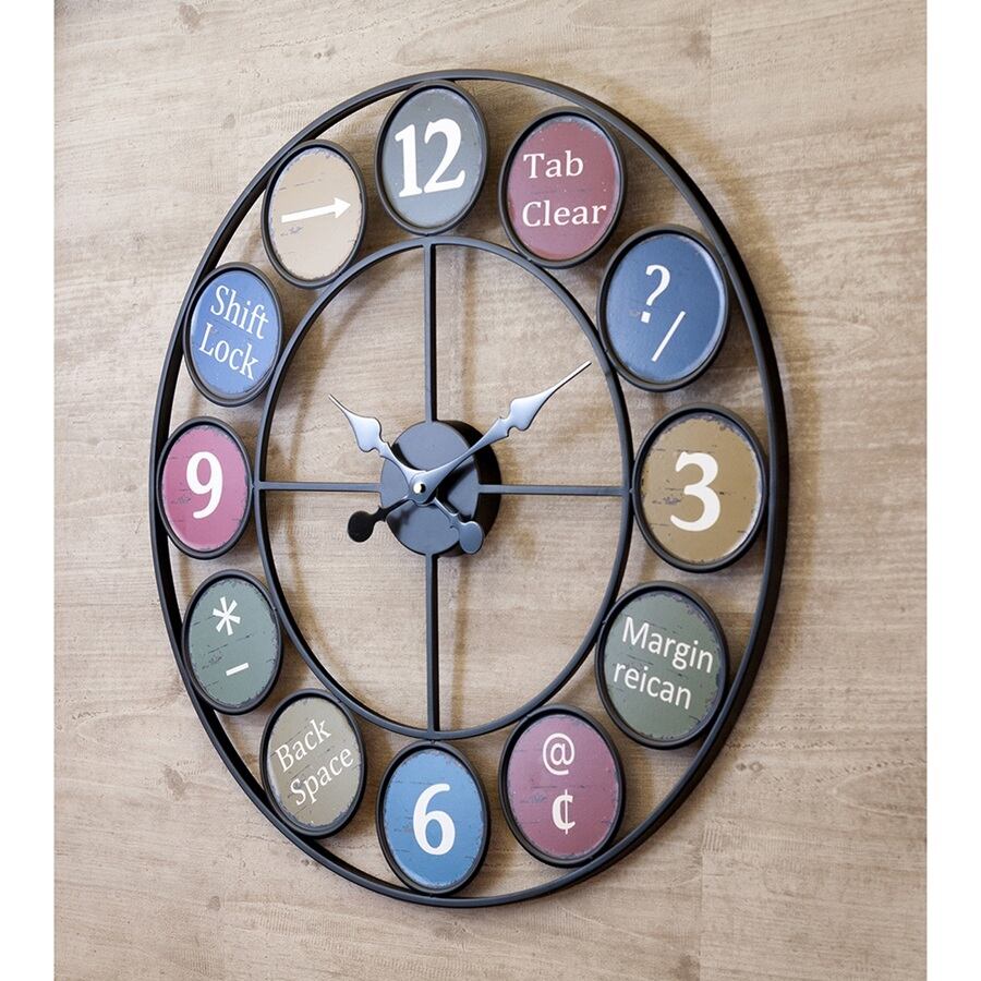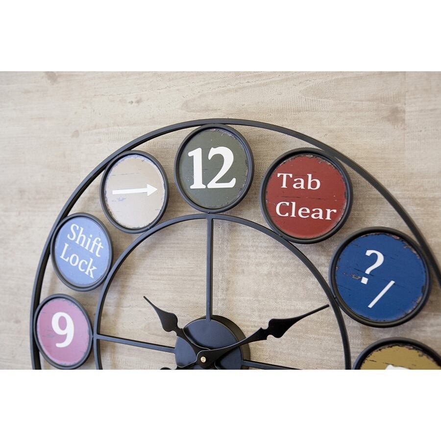 カラフルな数字が並ぶ、アンティーク加工を施した壁掛け時計。