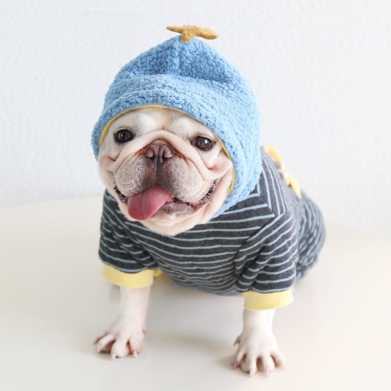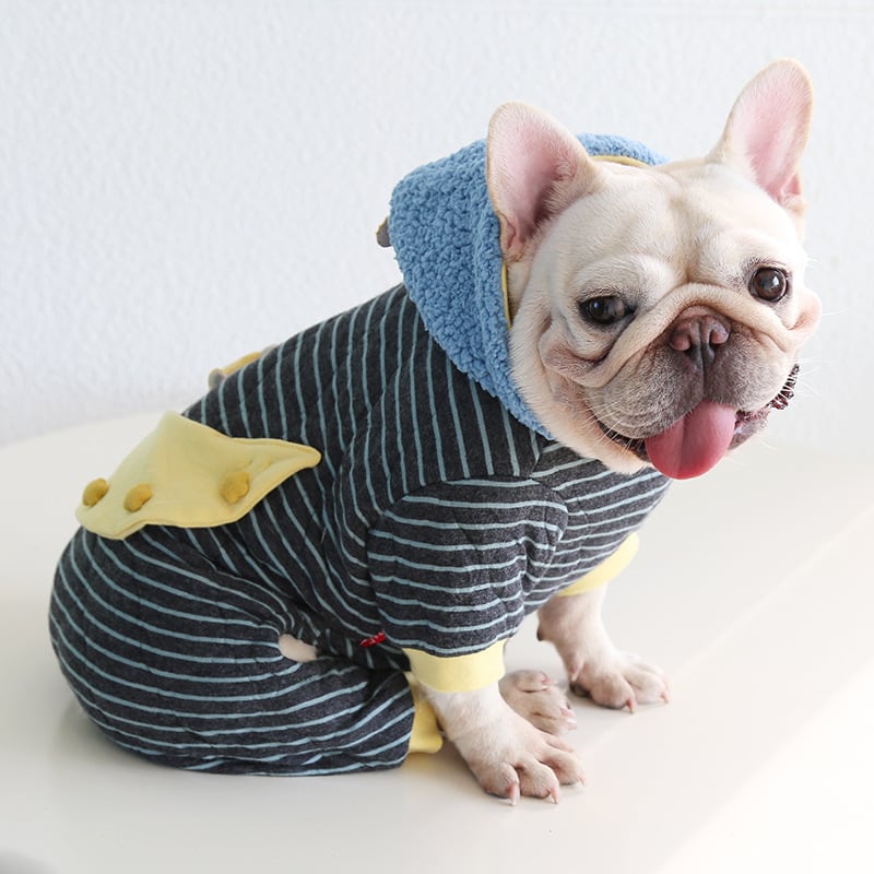 【予約商品】ドッグウエア 犬服 フレブル ブル フレンチブルドッグ / つなぎ ロンパース カバーオール フード付き ボーダー ボア 星 月 キルティング イエロー 黄色 ブルー 青 防寒 秋 冬 新作 B27-0904 (わんこ服 服 わんちゃん おでかけ 中型犬 春 夏 秋 犬用品 ペット用品 ペット服 可愛い 人気 おススメ)