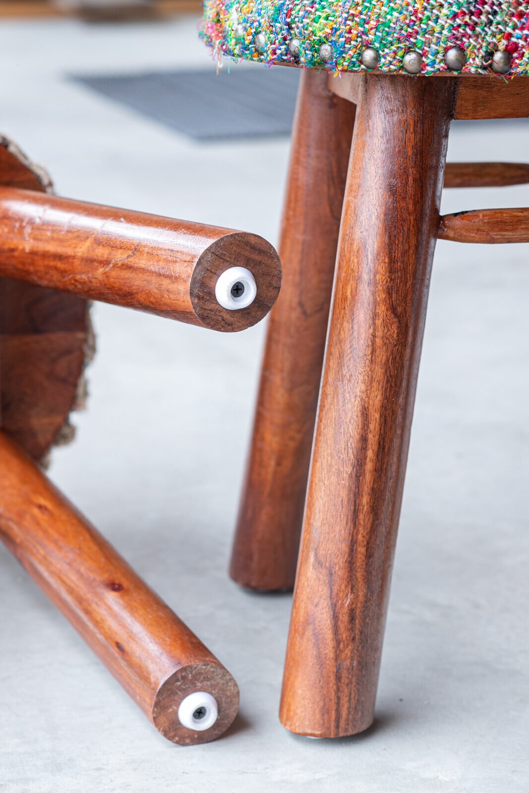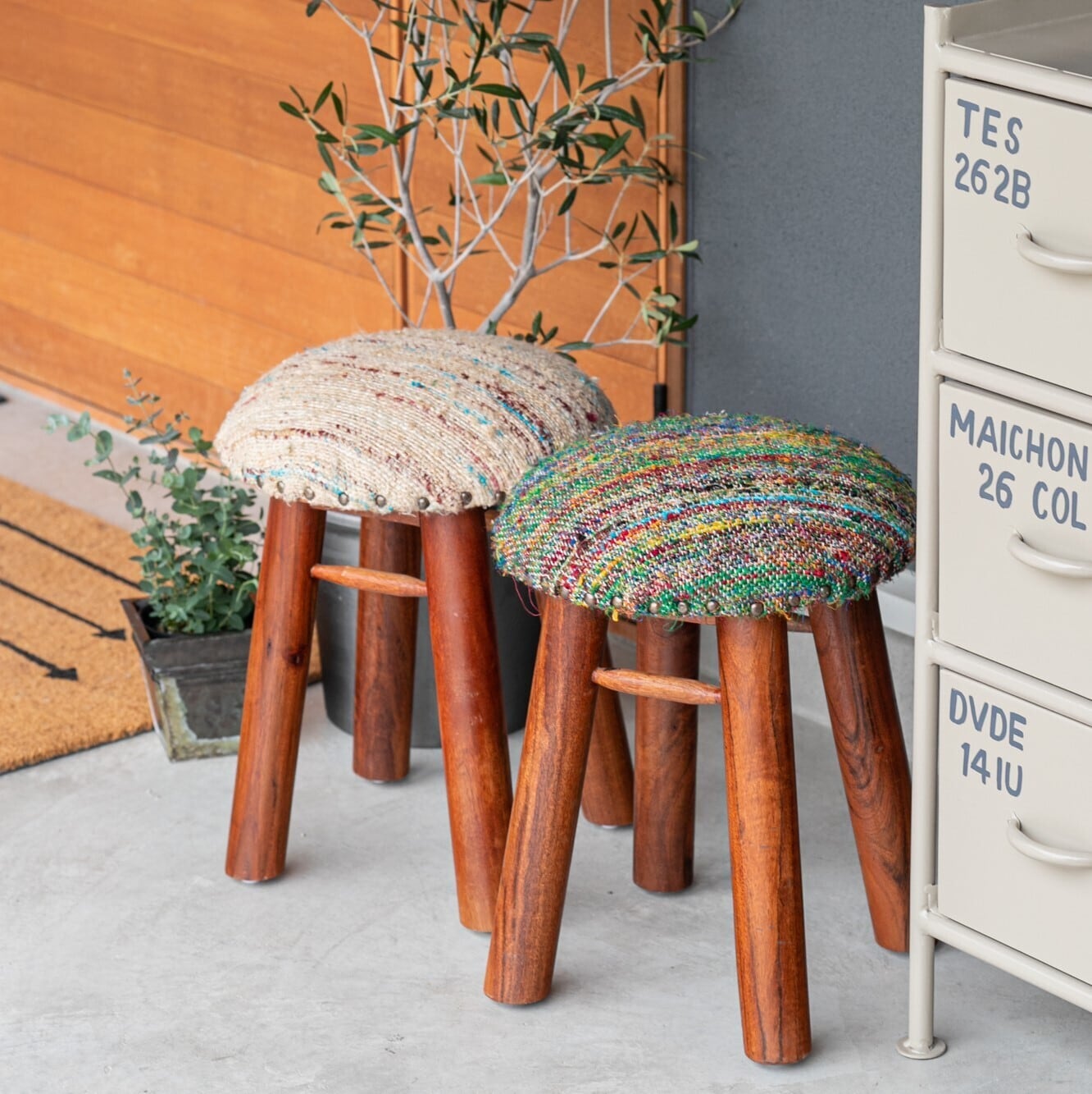マンゴー材を使用した風合いある木脚と、インパクトのある生地感が可愛いスツールです。