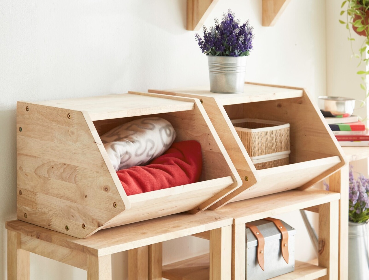 天然木の温もりを感じられるラバーウッドを使用した、コンパクトで機能的な収納ボックスです。