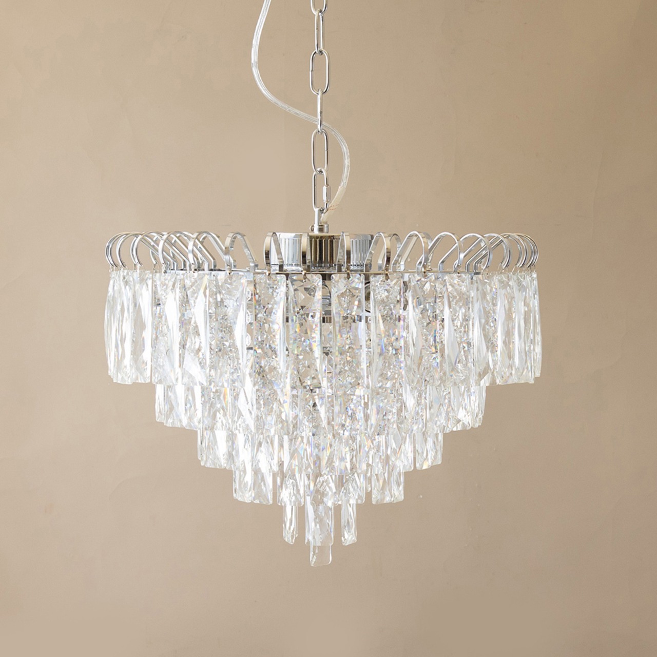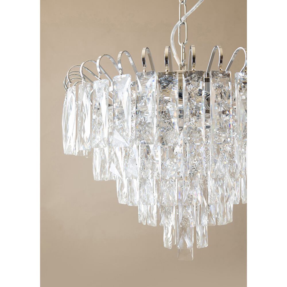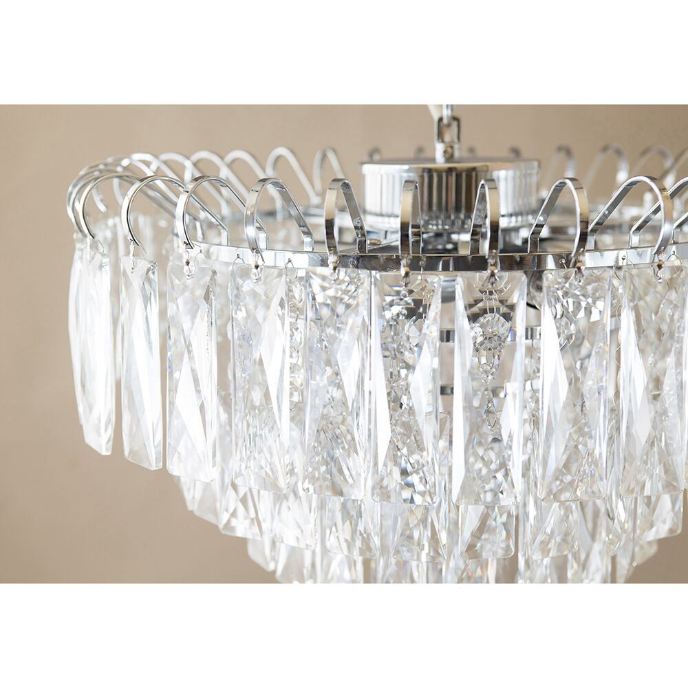 丁寧にカットされたクリスタルガラスが、光を受けて空間に無数の輝きを散りばめるラグジュアリーなシャンデリア。