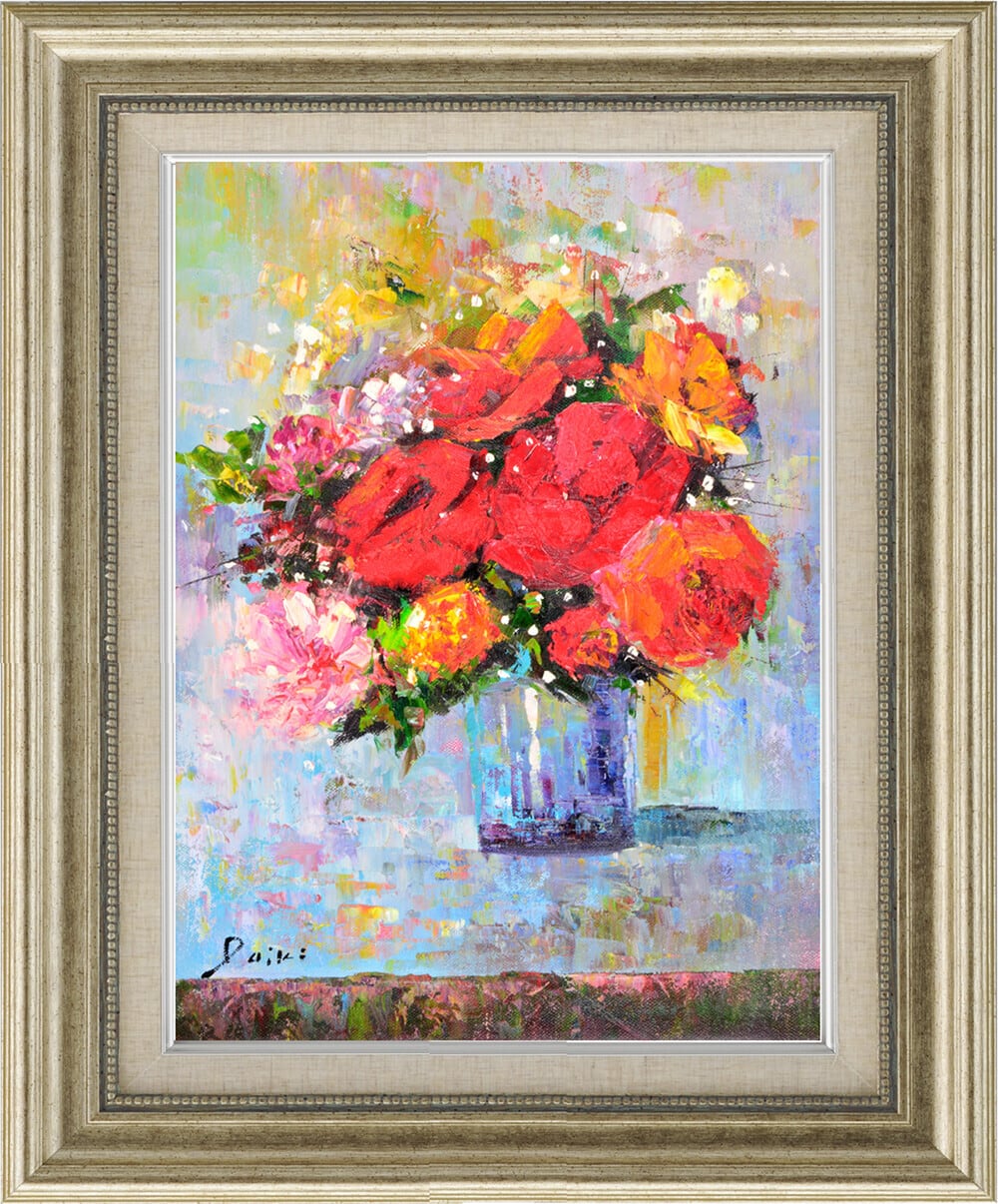 アートフレーム 油絵 オイルペイントアート 山下 大希 赤薔薇 フレーム付き B31-369 (風景 手書き フレーム パネル ポスター ボード 壁掛け アート 絵 絵画 おしゃれ インテリア お洒落 おしゃれ オシャレ 人気 おススメ おすすめ)