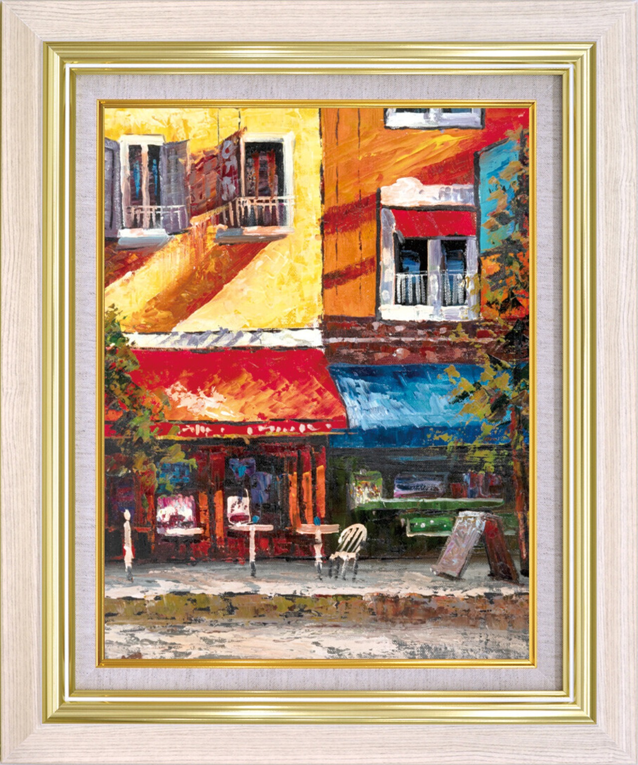アートフレーム 油絵 オイルペイントアート 山下 大希 カフェ通り フレーム付き B31-371 (風景 手書き フレーム パネル ポスター ボード 壁掛け アート 絵 絵画 おしゃれ インテリア お洒落 おしゃれ オシャレ 人気 おススメ おすすめ)