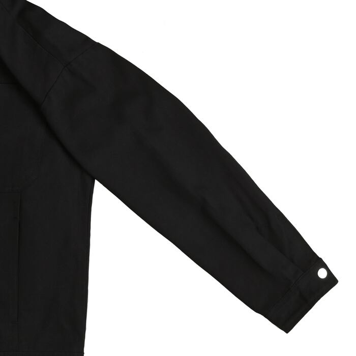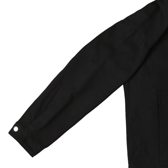 胸元のポケット、比翼仕立てのフロントボタンなど、ワークジャケットならではの実用性をしっかり踏襲。