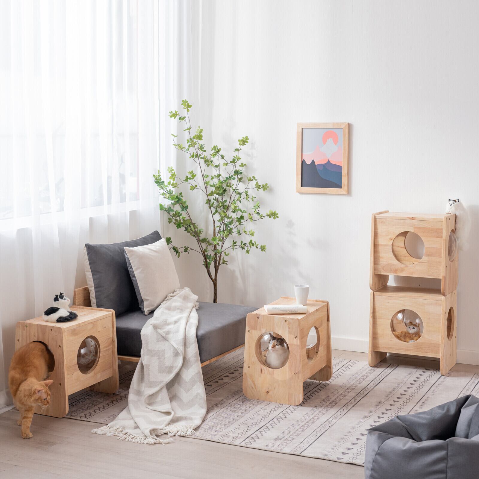 猫ちゃんと人、どちらにとっても心地よい空間をつくる、多機能キャットキューブです。