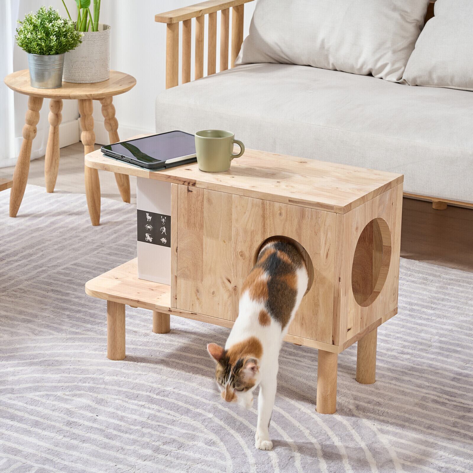 マルチサイドテーブル キャットハウス B43-0080 (サイドテーブル ナイトテーブル ラバーウッド 天然木 木製 ねこ 猫 キャット ベッド 猫ベッド 猫ちゃん 猫用品 猫用 ペット用品 猫家具 猫ハウス キャットハウス 猫用インテリア おしゃれ猫家具 シンプルデザイン 猫用遊び場 猫家具 キャットハウス 収納付きテーブル 猫用インテリア 多機能家具 3way家具 猫と暮らす おしゃれ猫家具 シンプルデザイン 猫用収納 猫用ベッド 猫と共存 家具シリーズ 可愛い 話題 人気 おすすめ おススメ)