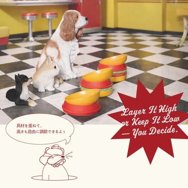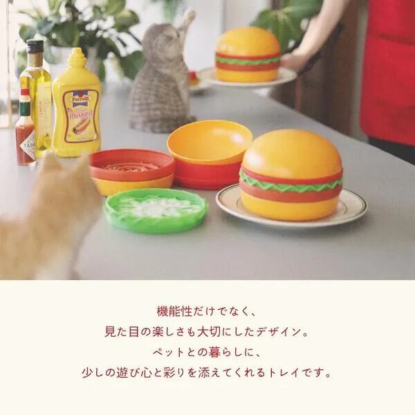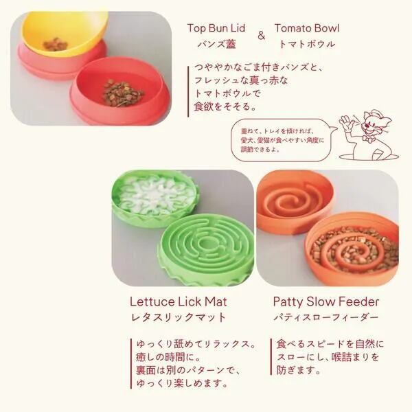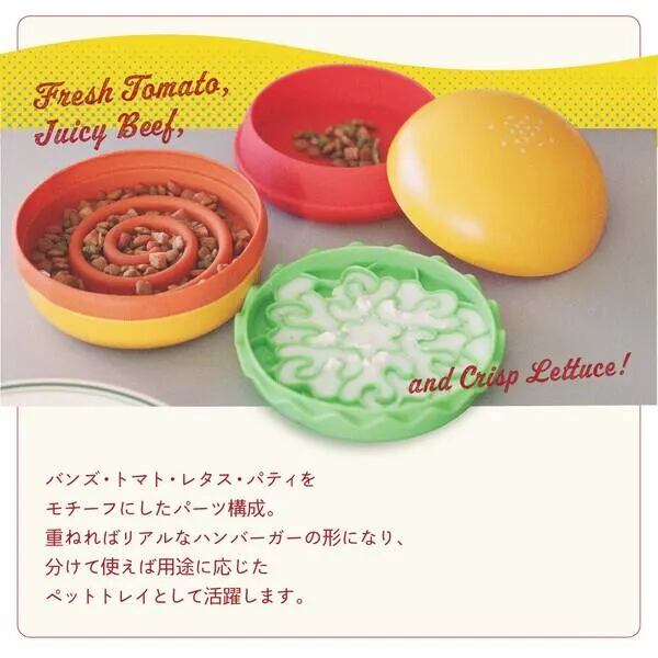 ハンバーガー トレイ B01-037 (ハンバーガーペットトレー ペットトレー 犬用食器 猫用食器 ペットボウル スローフィーダー リックマット 犬 早食い防止 猫 フードボウル 多機能トレー ペット用品 おしゃれ ペットグッズ かわいい ハンバーガー デザイン食器 トマトボウル レタスリックマット パティスローフィーダー 犬用ボウル 猫用ボウル ペット食器 セパレートトレー)
