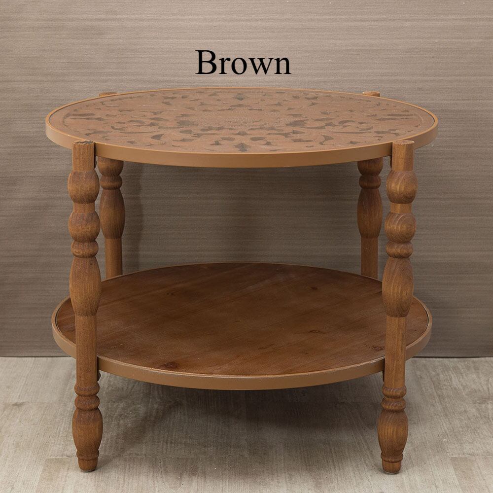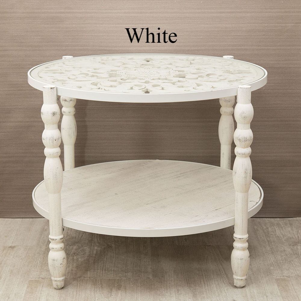 ラウンドテーブル B23-260 (ガラステーブル 木製サイドテーブル 透かしデザイン テーブル ホワイト テーブル ブラウン テーブル 2段テーブル おしゃれ サイドテーブル ローテーブル 花柄 テーブル ツタ模様 テーブル ナチュラル インテリア クラシック 家具 デザイン お洒落 おしゃれ オシャレ 人気 おススメ おすすめ 店舗 事務所 飲食店 カフェ)