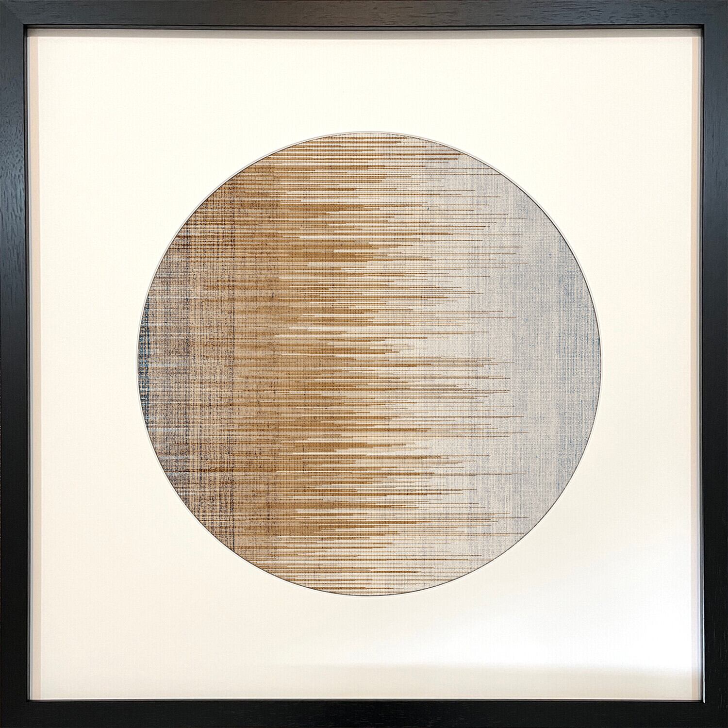 直径モチーフを大胆に配した丸型マット紙×スクエアのアートパネルは、空間に静かな存在感と均整のとれた印象をもたらします。