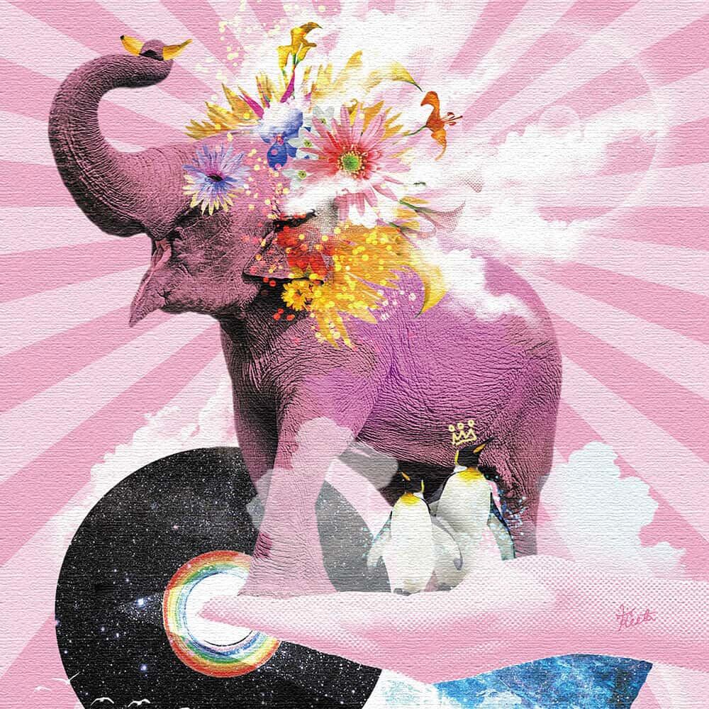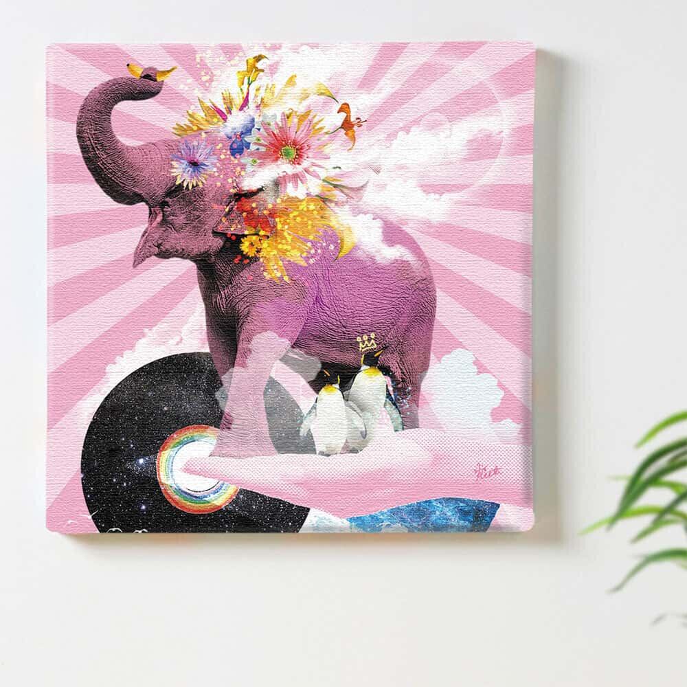 ファブリックボード Galaxy Graphics グラフィックアート グラフィック 像 ゾウ ぞう 動物 アニマル ピンク 花 フラワー B17-496 ファブリック パネル ポスター ボード 壁掛け アート 絵 おしゃれ インテリア