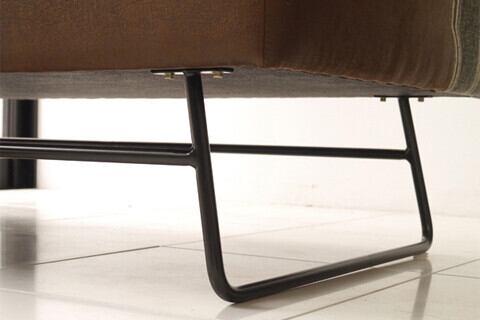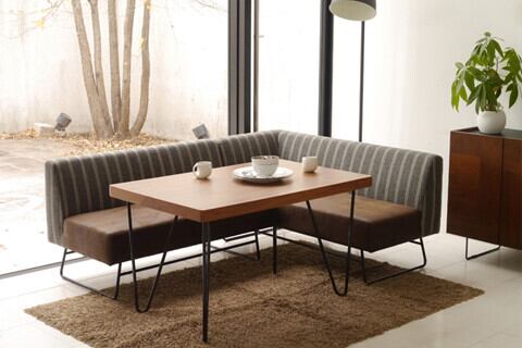細いブラックのスチール脚を合わせることで脚元は軽快に仕上げています。
