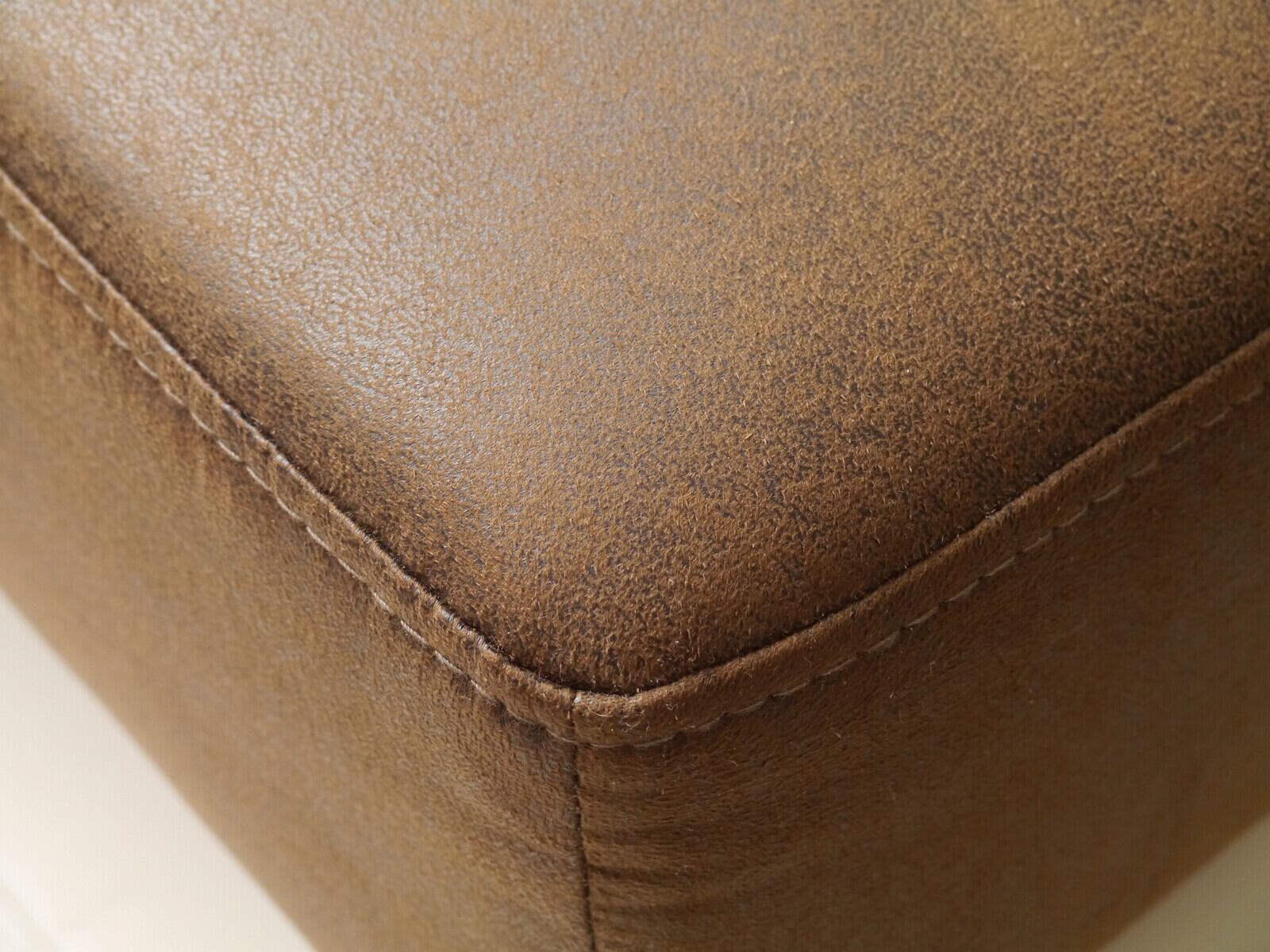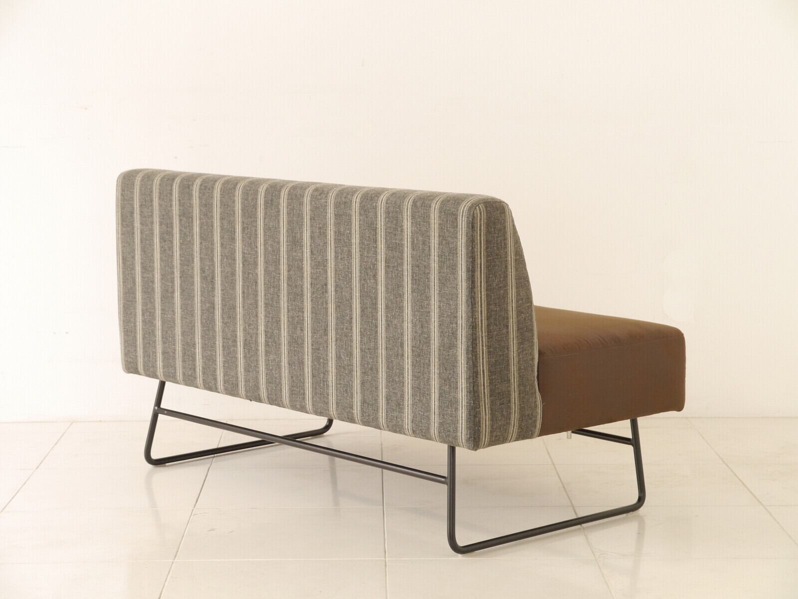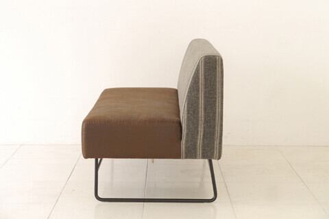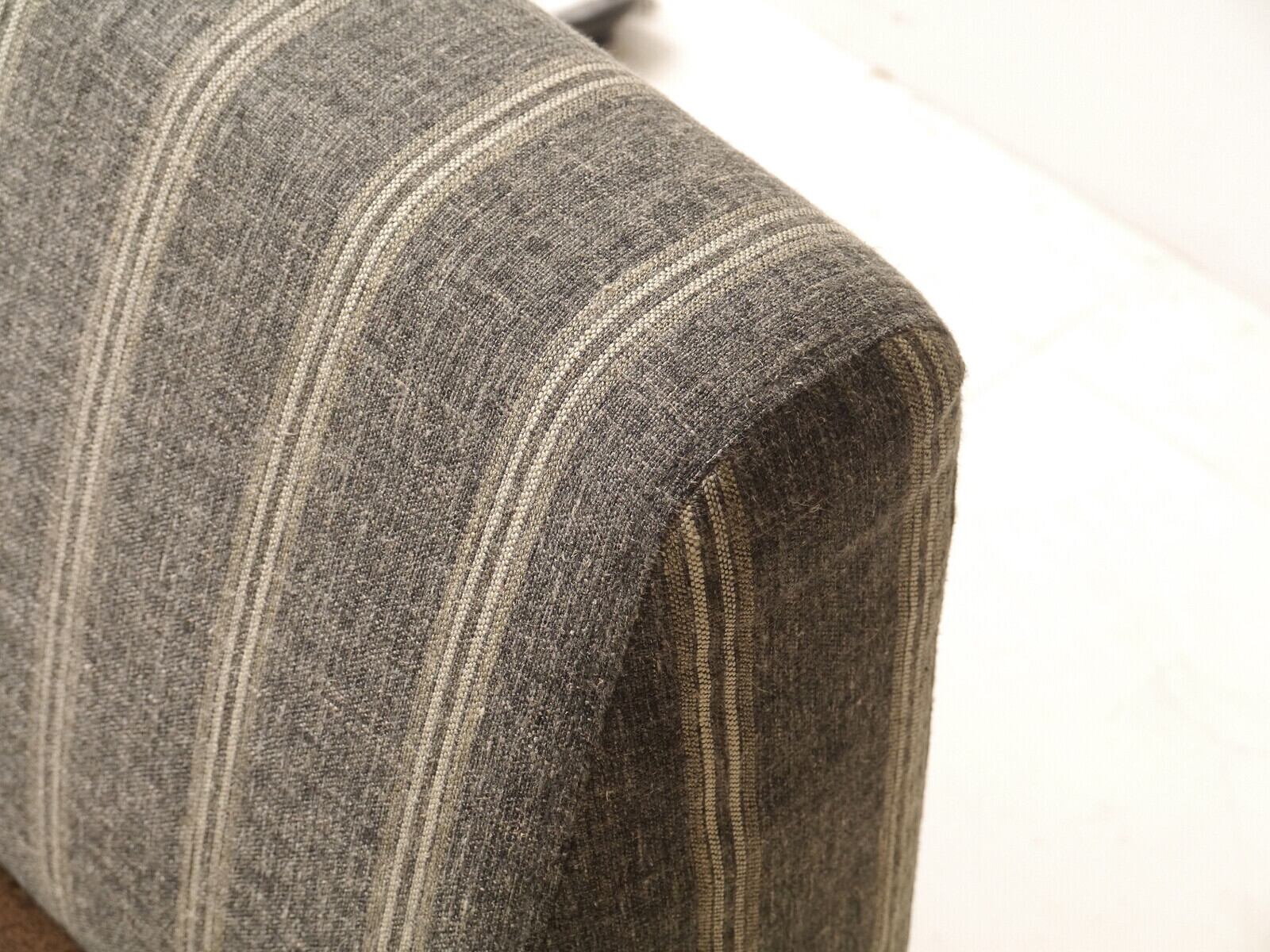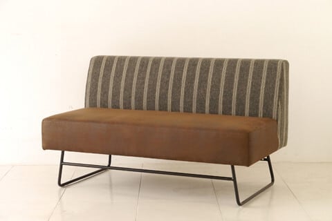ざっくりとした素材感のストライプ生地に革風生地を合わせ、ツートンで張り込んだカウチです。