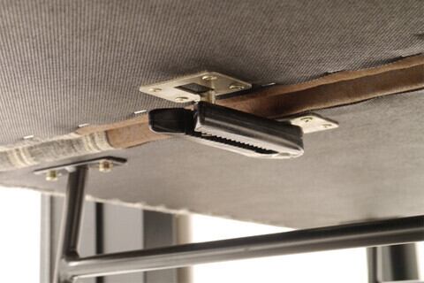 ソファと組合せて使う際、本体同士のズレを防止するジョイントパーツを座面下に収めています。