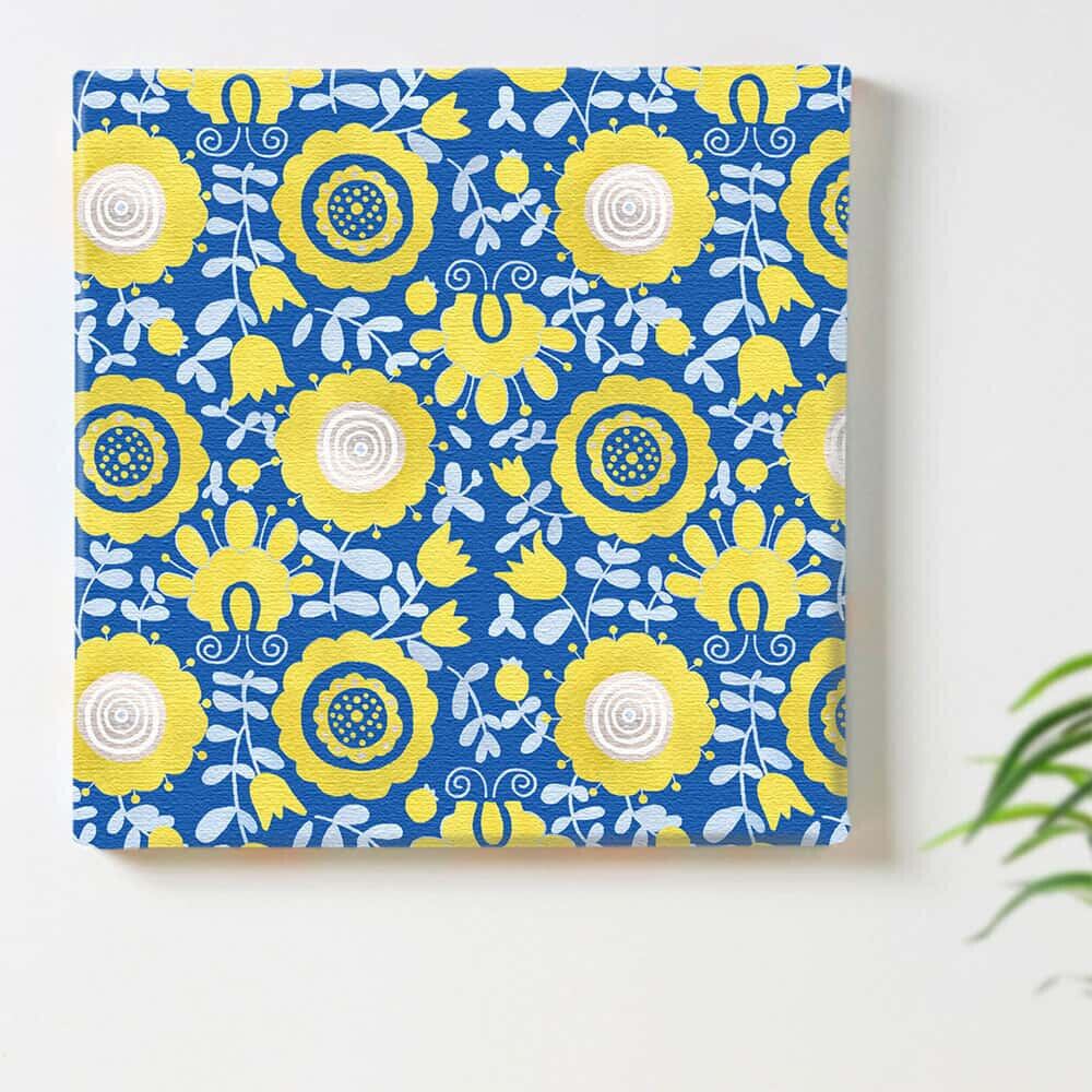 ファブリックボード 北欧 スカンジナビアン 花 フラワー ブルー 青 イエロー 黄色 B17-658 ファブリック パネル ポスター ボード 壁掛け アート 絵 おしゃれ インテリア