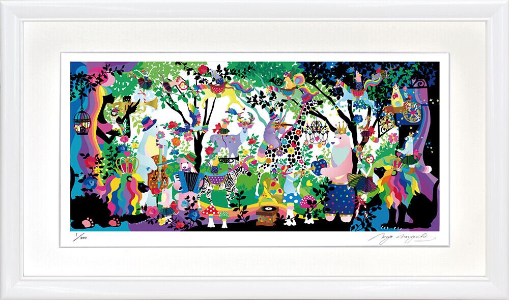 おんなのこ、植物、動物といった様々なモチーフが重なり合う鮮やかな色使いの個性的なグラフィックを得意としている。
