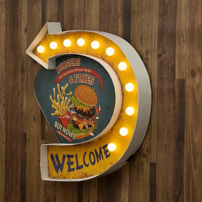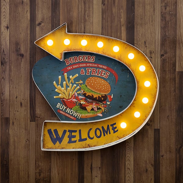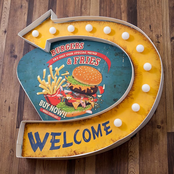 ネオンサイン LED WELCOME BURGERS & FRIES B23-062 (ネオン オープン ハンバーガー インテリア インテリア雑貨 アメリカン雑貨 アメリカン レトロ ブリキ 置物 オブジェ アンティーク デザイン お洒落 おしゃれ オシャレ 人気 おススメ おすすめ)