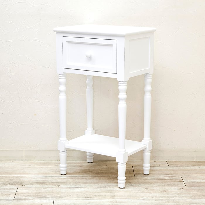 木製 サイドテーブル B23-109 (ホワイト 白 ブルー 青 インテリア インテリア家具 ヨーロピアン 引き出し収納 収納 家具 アンティーク ヴィンテージ レトロ 個性的 デザイン お洒落 おしゃれ オシャレ 人気 おススメ おすすめ)