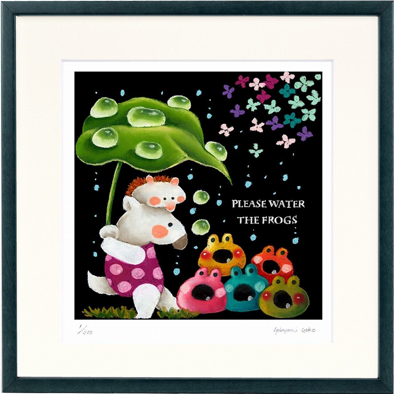 アートフレーム やぶがみ ようこ 雨とカエル フレーム付き B31-137 (YABUGAMI YOKO イラストレーター チョークアート 作家 フレーム パネル ポスター ボード 壁掛け アート 絵 絵画 おしゃれ インテリア お洒落 おしゃれ オシャレ 人気 おススメ おすすめ)