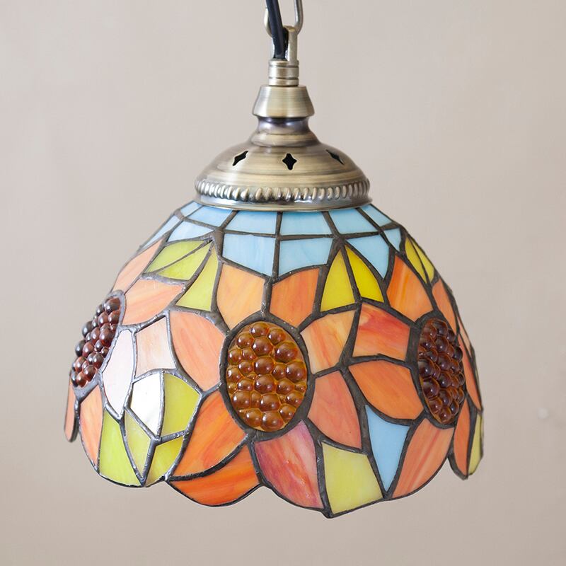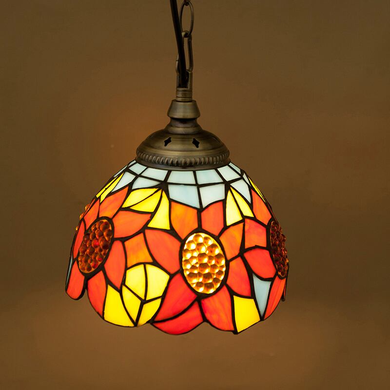 ペンダントランプ B23-129 (ステンドグラス ペンダント 照明 ライト ランプ ガラス カラフル 花 フラワー インテリア インテリア雑貨 アンティーク ヴィンテージ レトロ ノスタルジック 個性的 デザイン お洒落 おしゃれ オシャレ 人気 おススメ おすすめ)