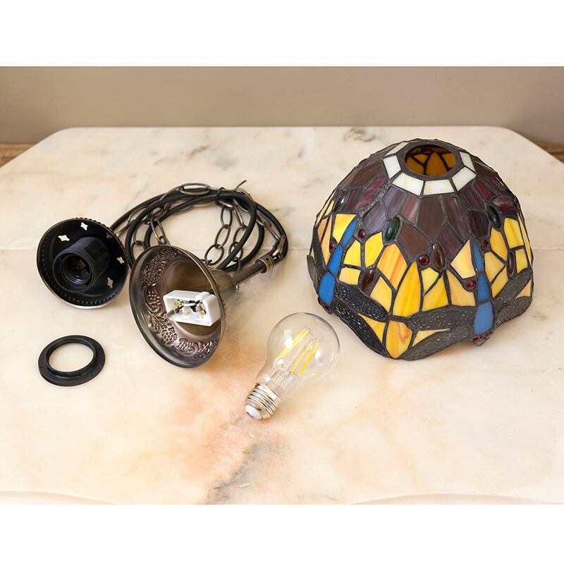 ペンダントランプ B23-130 (ステンドグラス ペンダント 照明 ライト ランプ ガラス カラフル とんぼ インテリア インテリア雑貨 アンティーク ヴィンテージ レトロ ノスタルジック 個性的 デザイン お洒落 おしゃれ オシャレ 人気 おススメ おすすめ)