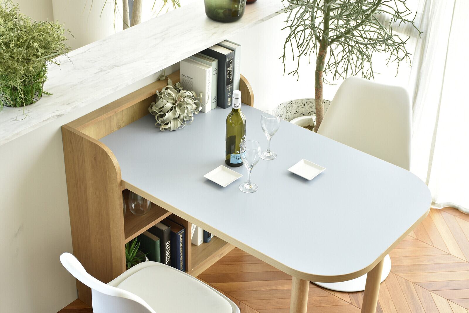 収納がついたダイニングテーブル。
